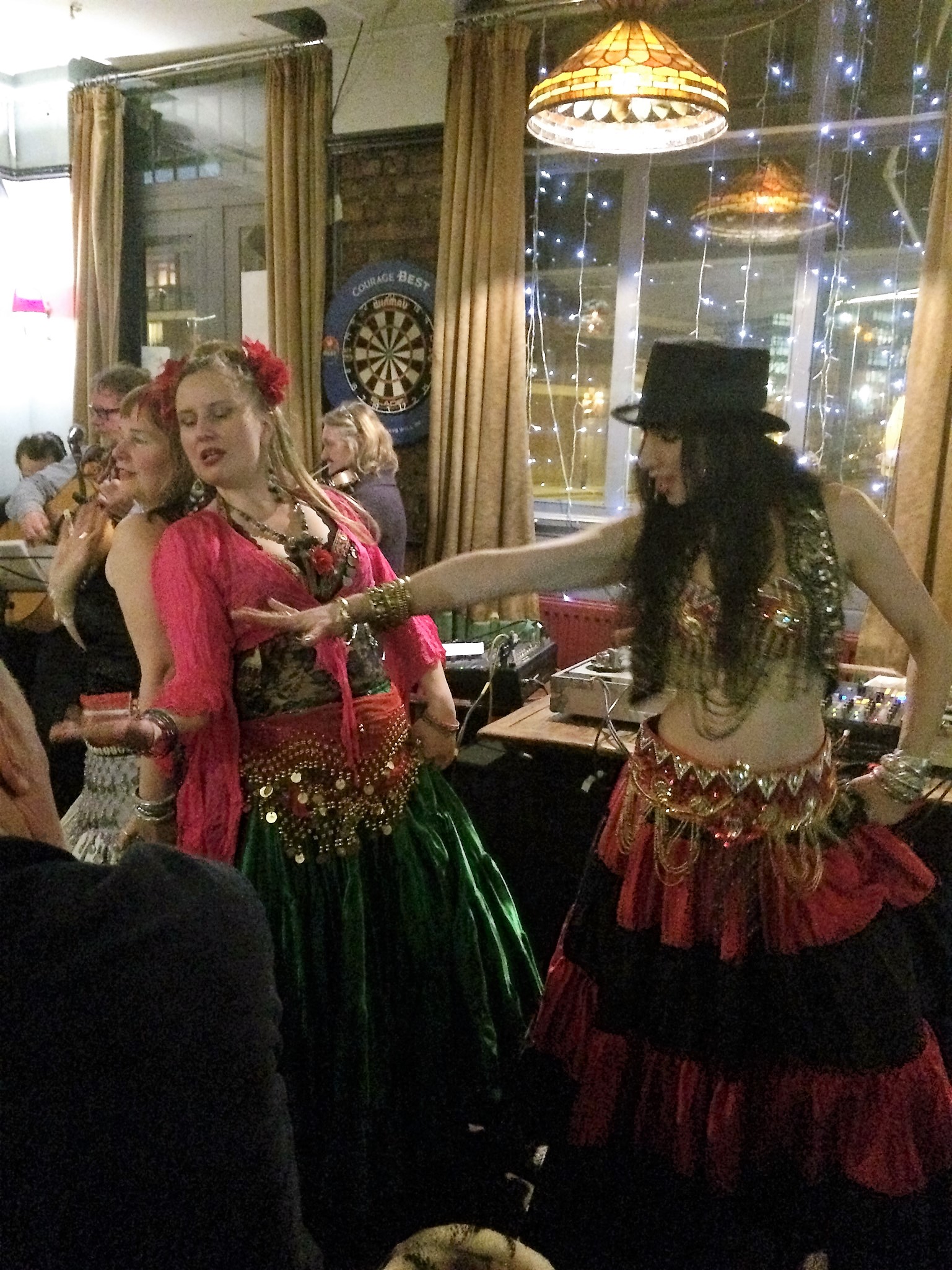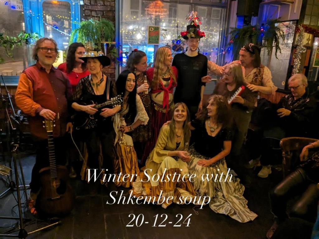 Friday 20 December 2024 at The Royal Sovereign, Clapton with special guest performance from Bellydance Troupe-Sharena Sol. We had winter solstice celebrations with old friends and new. There was Gypsy Balkan music and dance with a rock and roll twist – an outside fire with a winter solstice ceremony.