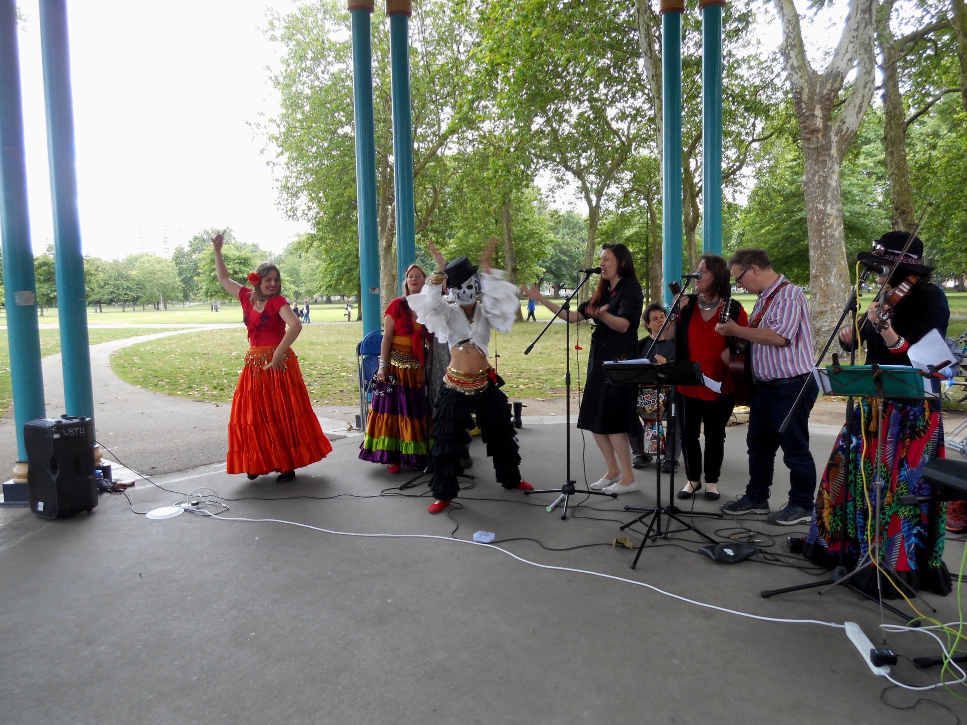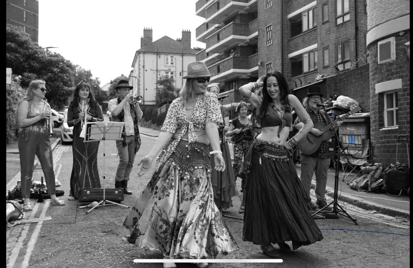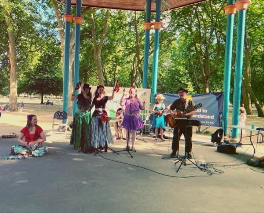 We played on the Victoria Park Bandstand as part of the Victoria Park Bandstand Season Summer 2022 organised by Victoria Park Friends on Sunday 10th July 2022. We also had the pleasure of being on the bandstand with Linda’s belly dance troupe and London City Brass.