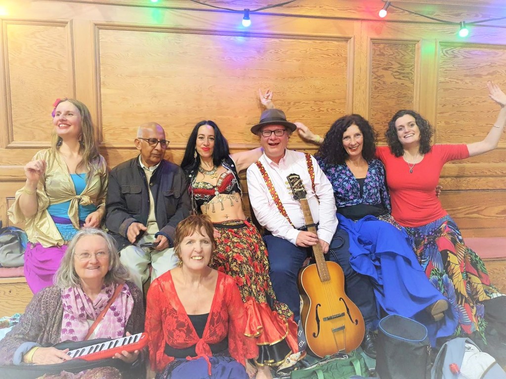 We absolutely loved going to the ‘Dance Around the World, Festival of World Dance’ on Sunday 30th October 2022. Fiona ran a ‘Gypsy’ dance workshop which was great fun and well attended. Our performance of three songs was wonderful and the organiser thanked us and said “We have received many, many warm words of praise for all the performances and teaching at the event. Your beautiful, vibrant and elegant dancing was really mesmerising and delighted the audience… We love having Shkembe Soup at the event.” Anne, organiser, DATW. Here’s their website for all news https://www.datw.org.uk/